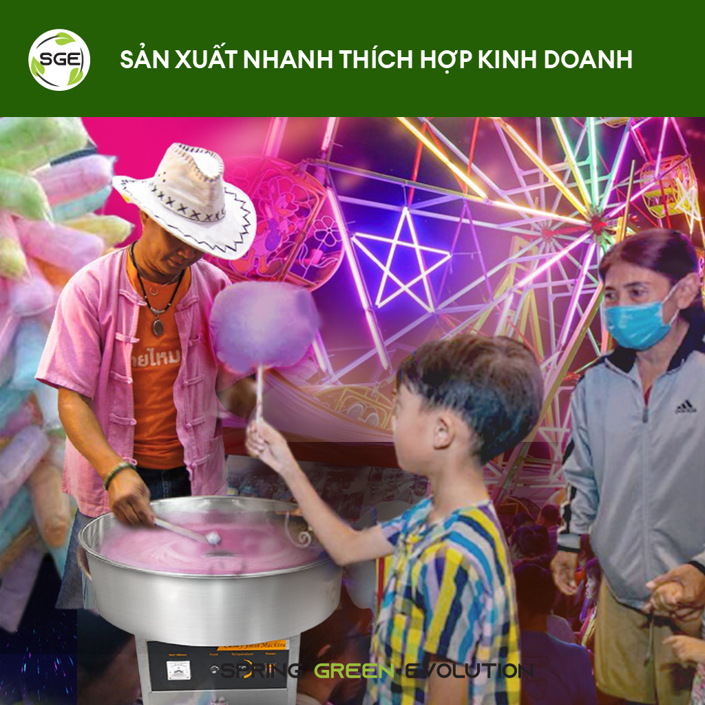 Máy kẹo bông Có thể làm kẹo bông mềm, sản xuất nhanh. Thích hợp để làm kẹo bông để bán bởi vì nó có năng lực sản xuất cao dùng nguyên liệu ít và sử dụng bền lâu. Máy cũng có thể sử dụng cho các event, sự kiện hay tổ chức hoạt động cho trẻ nhỏ do máy sử dụng được lâu dài.