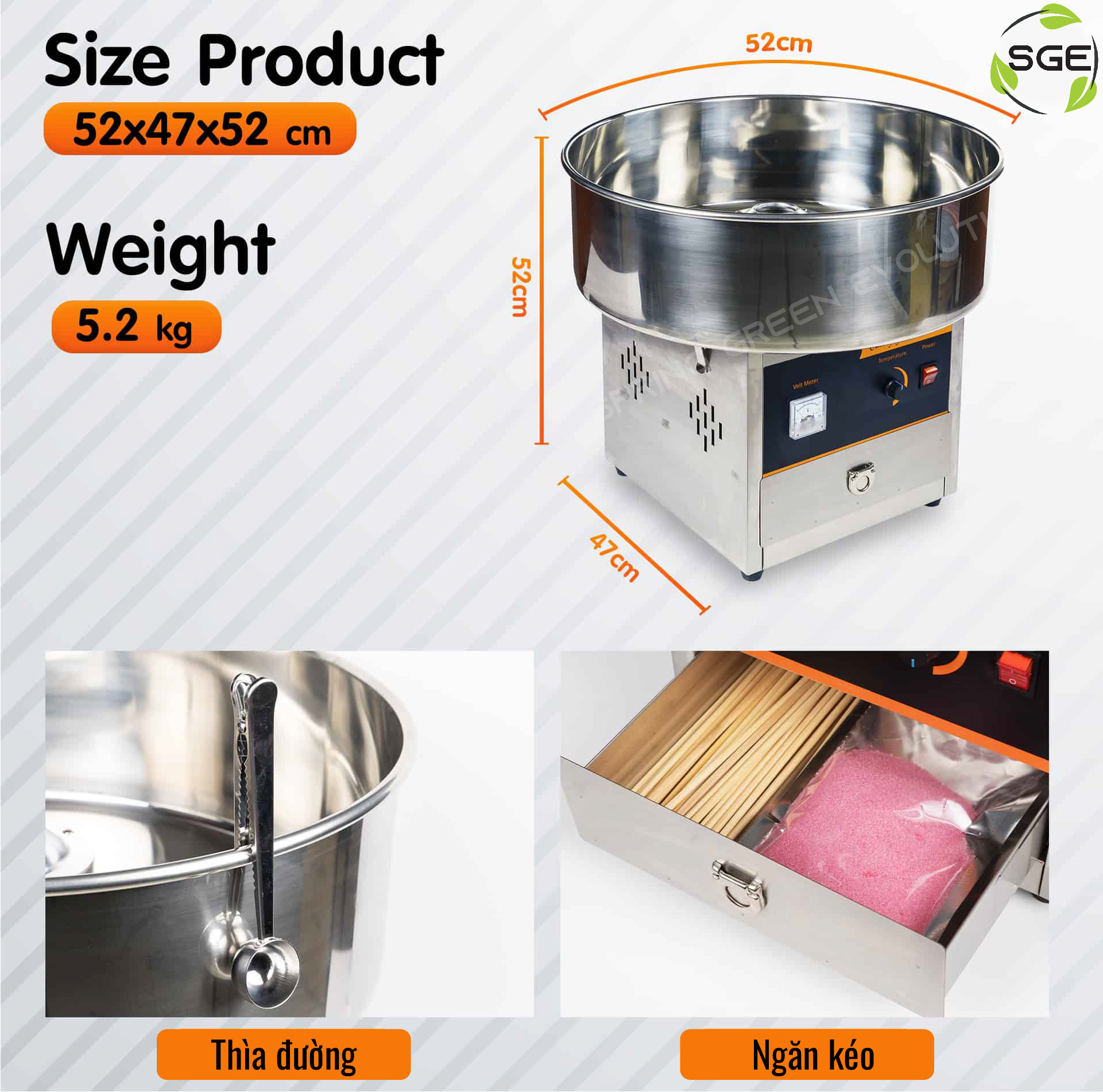 KÍCH THƯỚC MÁY LÀM KẸO BÔNG
