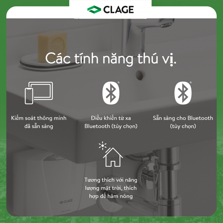 Được thừa hưởng phong cách thiết kế tinh xảo của nền công nghiệp Đức – Các sản phẩm thuộc dòng MCX sở hữu dáng vẻ hiện đại, nhỏ gọn, chắc chắn và cực kỳ tối ưu cho người sử dụng. Công nghệ độc quyền, an toàn tuyệt đối. Kể từ khi thành lập năm 1951, nhờ phát hiện ra khả năng ứng dụng nguyên tắc vật lý cơ bản vào thực tế sản phẩm là dùng trở kháng cao của dòng nước để tạo thành 1 điện trở tự nhiên, giúp cách ly dòng điện đảm bảo an toàn cho người dùng. CLAGE đã triệt để áp dụng nguyên tắc này trong các thiết bị của mình. Hiện tại, CLAGE đang là thương hiệu sở hữu độc quyền công nghệ này trên toàn thế giới. Nhiệt độ nước đầu ra được kiểm soát tối ưu, hoàn toàn không cần pha thêm nước lạnh để đạt được nhiệt độ nước mong muốn, cũng không cần lo lắng về nhiệt độ nước quá nóng gây nguy hiểm cho người dùng.  Kiểm soát trực quan, điều khiển dễ dàng và hiện đại: Bạn sẽ dễ dàng và nhanh chóng có được nước ấm để sử dụng trong chỉ vài giây. Đồng thời với 3 mức nhiệt độ được cài đặt sẵn là 35°C, 38°C hoặc tối đa 45°C, lựa chọn thông qua các phím bấm cảm ứng giúp người dùng tối thuận tiện lựa chọn nhiệt độ nước mà mình thấy thoải mái nhất. Trên thiết bị chính đã được tích hợp sẵn các phím bấm cảm ứng để lựa chọn mức nhiệt độ phù hợp sử dụng, đồng thời có thể nâng cấp thêm các tính năng điều khiển từ xa thông qua sóng FM, hoặc ở phiên bản cao cấp nhất có thể dùng điều khiển thông qua app “Smart Control” trên smartphone hoặc máy tính bảng.  Tiết kiệm năng lượng với công nghệ độc quyền.  Tiết kiệm năng lượng luôn là một ưu tiên trong thiết kế bất kỳ sản phẩm nào của CLAGE. Các sản phẩm của CLAGE nói chung hay đặc biệt là dòng MCX sử dụng phương pháp đun nóng bằng tiếp xúc điện cực trực tiếp với dòng nước, nhờ đó hiệu năng chuyển đổi năng lượng gần như 100%. Nước nóng sẵn sàng sử dụng chỉ sau 2 giây và không có năng lượng hao phí.  Hoạt động bền bỉ không đóng cặn vôi Nhiệt độ nước đầu ra được kiểm soát hoàn toàn là yếu tố tiên quyết để ngăn chặn các phản ứng hóa học tạo cặn canxi bên trong đường ống dẫn, từ đó tăng độ bền cho thiết bị. Máy làm nước nóng tức thì MCX kiểm soát nhiệt độ không vượt quá 45 độ C giúp xử lý triệt để tình trạng đóng cặn canxi này. Giúp cho sản phẩm có thể dễ dàng lắp đặt dưới bất kỳ chậu rửa tay hay các hộc tủ trong bộ tủ bếp.  Thiết kế nguyên khối, hình dáng nhỏ gọn với các đầu nối van nước tiện lợi giúp cho máy làm nước nóng tức thì MCX của CLAGE có thể lắp đặt ở bất kỳ vị trí nào, dưới chậu rửa tay nhà tắm, dưới chậu rửa quầy ba hay trong các hộc tủ nhà bếp đều có thể dễ dàng lắp đặt.   Theo các thông số kỹ thuật như công suất máy, dòng điện đầu vào và lưu lượng nước đầu ra, máy nước nóng tức thì dòng MCX sẽ được chia thành MCX 3, MCX 4, MCX 6, MCX 7.   Hướng dẫn lắp đặt thiết bị: