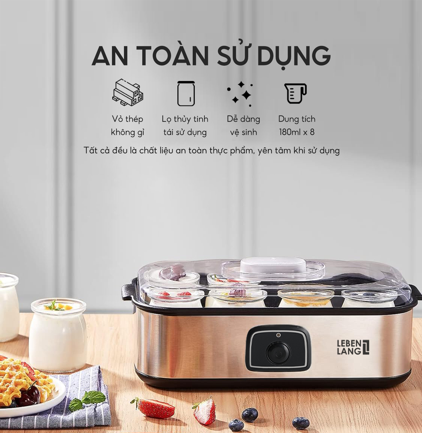 Mua tại TiktokMáy làm sữa chua Lebenlang LBL9139, công suất 20W, dung tích 180ml, gồm 8 lọ thủy tinh, bảo hành 2 năm - hàng chính hãng 6 LÝ DO NÊN CHỌN MÁY LÀM SỮA CHUA CỦA LEBENLANG