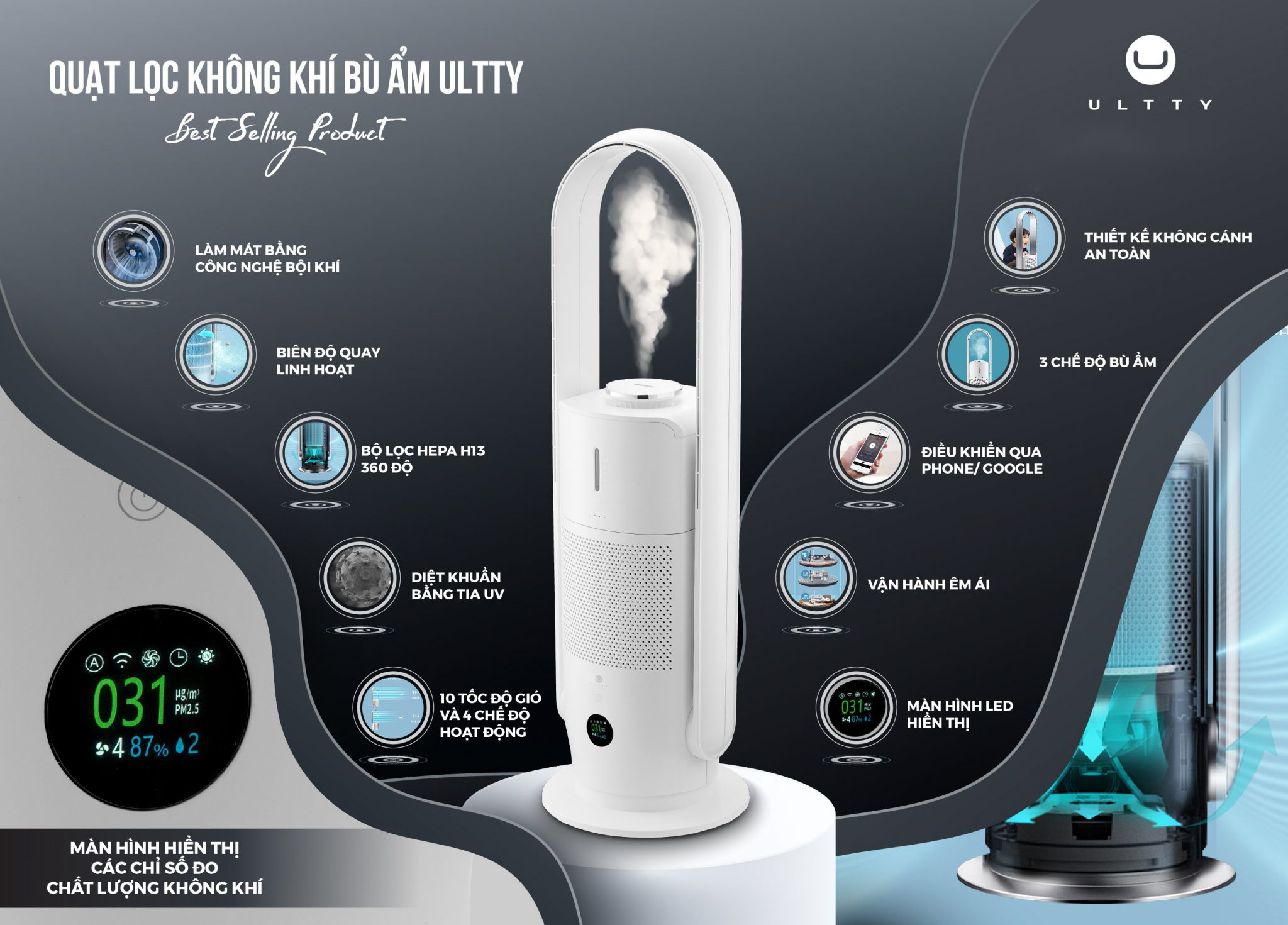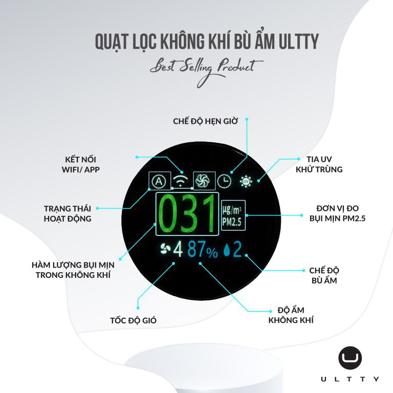 - Sở hữu công nghệ “độc nhất vô nhị” này, quạt Ultty có thể tiêu diệt được hầu hết các loại vi khuẩn, virus, kể cả virus corona Màn hình led hiển thị chất lượng không khí