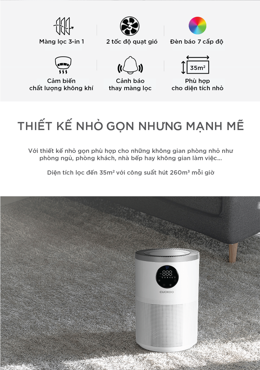 Máy lọc không khí Cuckoo: lọc sạch bụi PM 2.5, tiết kiệm điện (CAC-C1220FW) • Điện máy XANH