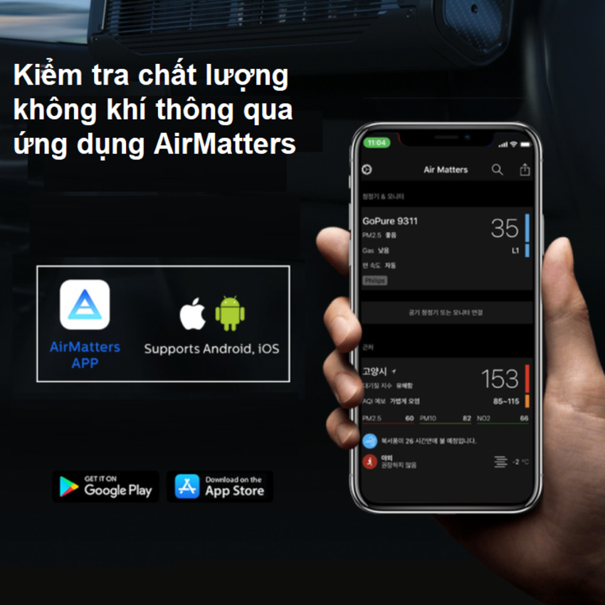 - Điều khiển từ xa qua ứng dụng app Air Matters trên điện thoại chạy hệ điều hành Android hoặc IOS