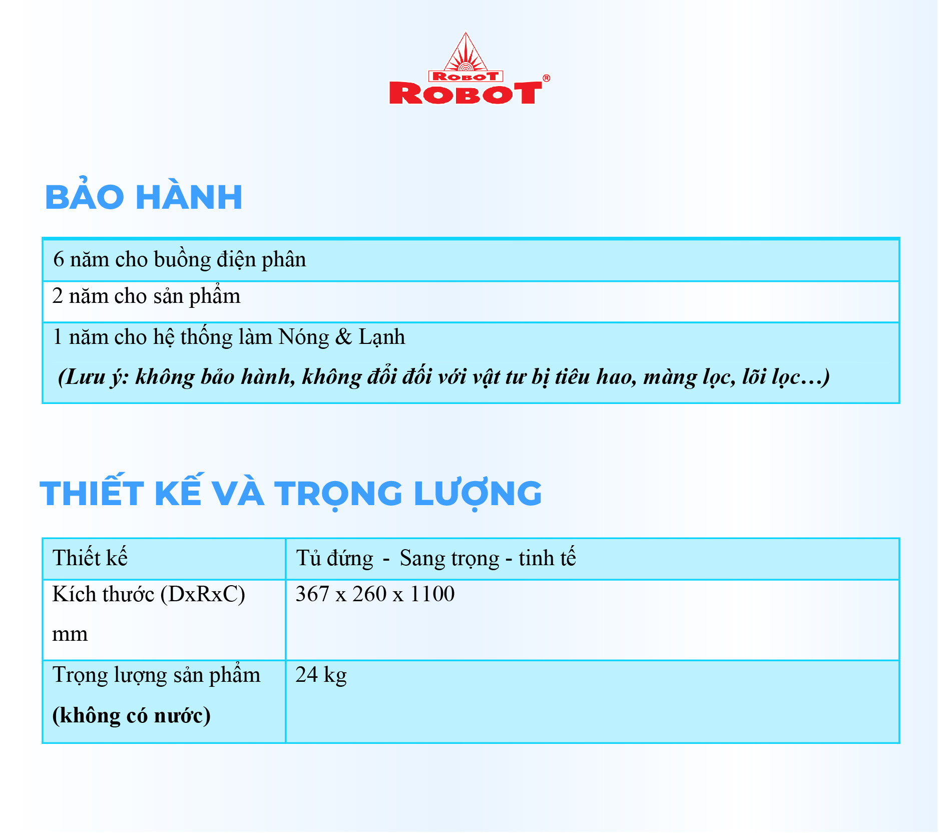 Với mong muốn nhiều gia đình Việt có thể sử dụng nước điện giải iON kiềm với chi phí hợp lý để bảo vệ sức khỏe, sắc đẹp & nâng cao chất lượng cuộc sống, ROBOT mang đến sản phẩm “Chất lượng Quốc tế - Giá thành Việt Nam”, phù hợp với mức sống của nhiều người. Tiết kiệm cho người tiêu dùng đến hơn một nửa chí phí so với máy nhập khẩu chỉ từ 30 – 50%, nhưng sở hữu nhiều ưu điểm, tính năng vượt trội, chất lượng cao.