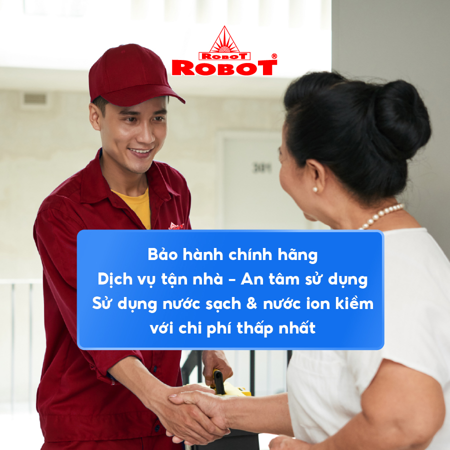 - Với thiết kế độc đáo mới nhất của ROBOT, máy có thể cung cấp 3 mức nước pH kiềm giàu hydrogen & nước nóng thông minh 4 cấp nhiệt độ. Kiểu dáng tinh tế, thời thượng sẽ là điểm nhấn nhẹ nhàng, sang trọng cho không gian nội thất. Chỉ số Hydrogen được kiểm nghiệm tại phòng thí nghiệm chuyên nghiệp Sản phẩm đa chức năng - tiện nghi sử dụng chăm sóc sức khỏe gia đình Máy lọc nước RO Hydrogen kiềm ROBOT giàu khoáng chất ROBOT HydroMega Plus-9 cung cấp nguồn nước giàu Hydrogen kiềm vô cùng cần thiết cho sức khỏe nhờ công nghệ lọc hiện đại, bổ sung tối đa lượng hydrogen kiềm với 3 mức pH ổn định theo lưu lượng nước sử dụng. Công dụng của các mức nước pH, đảm bảo nhu cầu sử dụng “nước sạch – nước khỏe” Hàm lượng hydrogen của sản phẩm có thể đạt trung bình 800ppb; chỉ số chống Oxy hóa ORP trung bình -400mV. Có thể tham khảo ý kiến của Bác sĩ hoặc chuyên gia dinh dưỡng để được hướng dẫn loại nước uống phù hợp nhất cho cơ thể. Hệ thống 9 cấp lọc tăng cường Hydro hoạt tính, giàu tính kiềm, khoáng chất & giải pháp cho nguồn nước giếng, nước cứng Hệ thống lọc có thể sử dụng với những khu vực gia đình có nguồn nước giếng khoan, chưa có nước thủy cục, hoặc khu vực nước nhiễm cứng, đá vôi. Lấy nước Nóng nhanh chóng với công nghệ QuikHEAT ROBOT HydroMega Plus-9 được tích hợp Công nghệ Quik-HEAT – Nóng Thông Minh, là sản phẩm Tiện ích – Hiện đại – An toàn cung cấp nguồn nước giàu hydrogen và chức năng nóng thông minh hoàn hảo, đáp ứng mọi nhu cầu sử dụng. Công nghệ nóng thông minh QuikHEAT từ ROBOT tùy chọn nhiệt độ & dung lượng nước nóng đến trên 99% khách hàng sử dụng yêu thích. Người dùng có thể lấy nước nóng ngay không giới hạn, không cần bình trữ & tùy chọn nhiều mức nhiệt độ 45/60/80/99oC, dung tích nước nóng 180/300/900 mL siêu tiện ích & tiết kiệm. Công nghệ RMC-LCD & Màn hình thông minh kiểm soát vận hành & chất lượng nước Tự hào với công nghệ độc quyền vi điều khiển RMC-LCD khẳng định chất lượng sản phẩm & thương hiệu ROBOT trong ngành lọc nước. Sản phẩm HydroMega Plus-9 tiếp tục mang đến nhiều chức năng tiện tích hơn hẳn cho khách hàng. Các chức năng thông minh của RMC-LCD giúp cảnh báo mọi rủi ro khi sử dụng, phát minh độc quyền của ROBOT Hiển thị TDS nguồn vào & sau lọc giúp khách hàng dễ dàng kiểm soát chất lượng nước nguồn & nước lọc trước khi uống Màn hình thông báo tuổi thọ lõi lọc theo lưu lượng nước sử dụng Hiển thị tuổi thọ của lõi lọc – là chức năng vô cùng quan trọng của một chiếc máy lọc nước an toàn nhưng thường bị “bỏ quên”, và không phải loại máy nào cũng được trang bị chức năng này. Màn hình máy HydroMega Plus-9 hiển thị trực quan tuổi thọ của lõi lọc & tính theo lượng nước sử dụng (không tính thời gian ghim điện) từ đó người dùng tiết kiệm chi phí, nhưng vẫn có thể thay lõi lọc kịp thời, đảm bảo nguồn nước sau lọc luôn trong trạng thái tốt nhất để sử dụng. Cấu tạo máy sắp xếp thông minh, dễ dàng thay lõi tại nhà Thiết kế tinh tế: Thiết kế Phù hợp với nhiều phong cách nội thất, tạo điểm nhấn khác biệt Giá thành tiết kiệm & chế độ bảo hành tối ưu Duy trì mục tiêu lan tỏa nguồn nước tốt đến với cộng đồng, các sản phẩm từ nhà sản xuất ROBOT luôn ổn định với mức giá tối ưu và cùng nhiều chương trình ưu đãi, khuyến mãi trong năm mang đến lợi ích tối đa cho người dùng. Hệ thống bảo hành rộng khắp 63 tỉnh – thành trên cả nước Chế độ bảo hành tận nhà, rộng khắp 63 tỉnh thành, lõi lọc, linh kiện, vật tư chính hãng luôn sẵn có để bảo trì, thay thế kịp thời, nhanh chóng và tiết kiệm tối đa thời gian, chi phí. Chứng nhận chất lượng Quốc gia – Quốc tế Vượt qua được những đánh giá kiểm định khắt khe về chất lượng, công nghệ & đáp ứng đầy đủ bộ tiêu chí gắt gao, các dòng Máy lọc nước ROBOT thế hệ mới đã đạt được những chứng nhận quốc gia & quốc tế danh giá, như: Tiêu chuẩn quốc gia của Bộ Khoa Học & Công Nghệ, tiêu chuẩn CE Châu Âu, ISO, đăng ký FDA, Đĩa Vàng Sáng Tạo Thế Giới, chất lượng nước lọc đạt chuẩn nước uống của Bộ Y Tế, chinh phục Kỷ Lục Việt Nam & Kỷ Lục Châu Á.