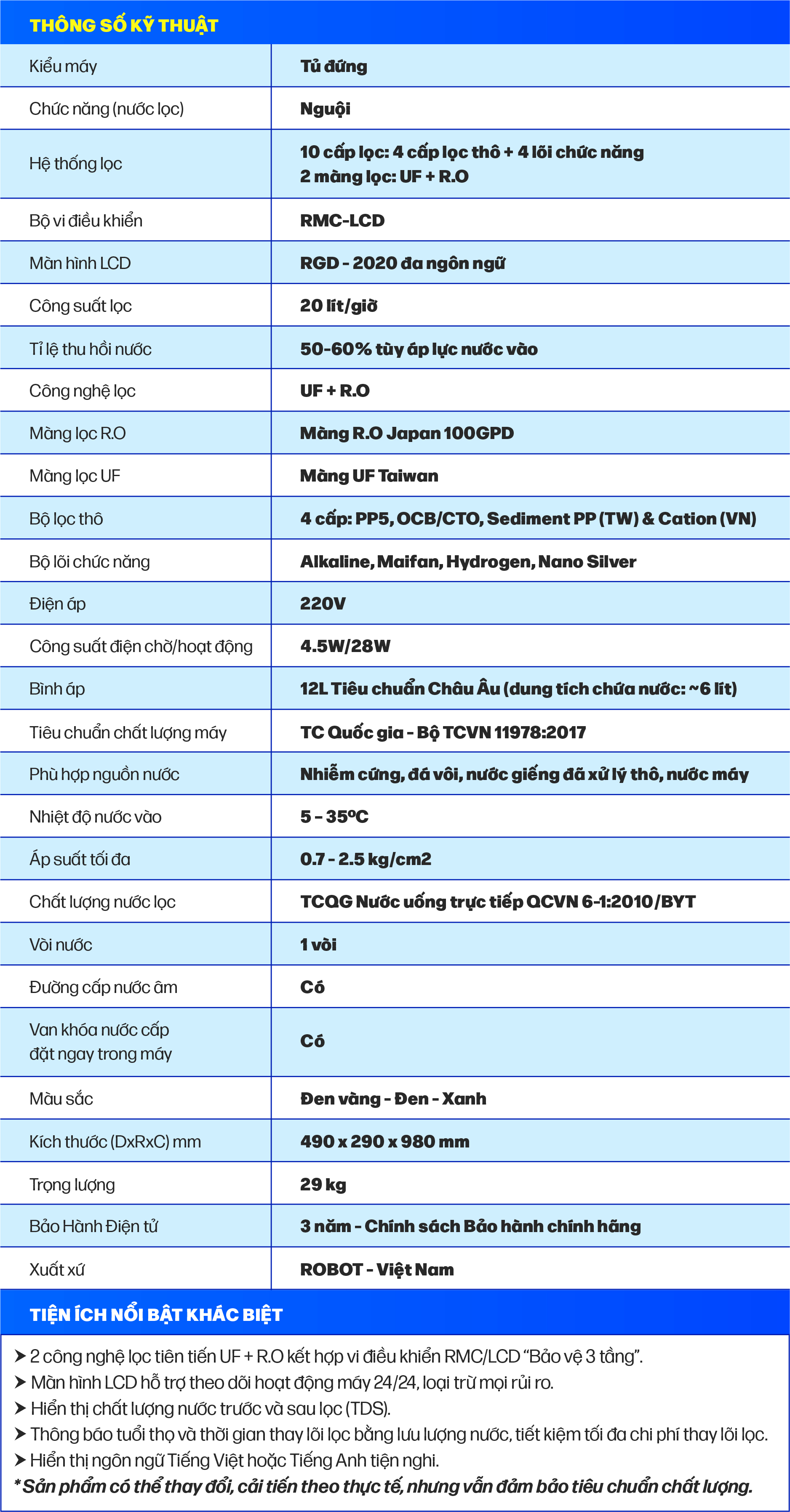 Máy Lọc Nước Nóng Lạnh ROBOT Duy Nhất 2 Màng Lọc UF + R O + RMC LCD