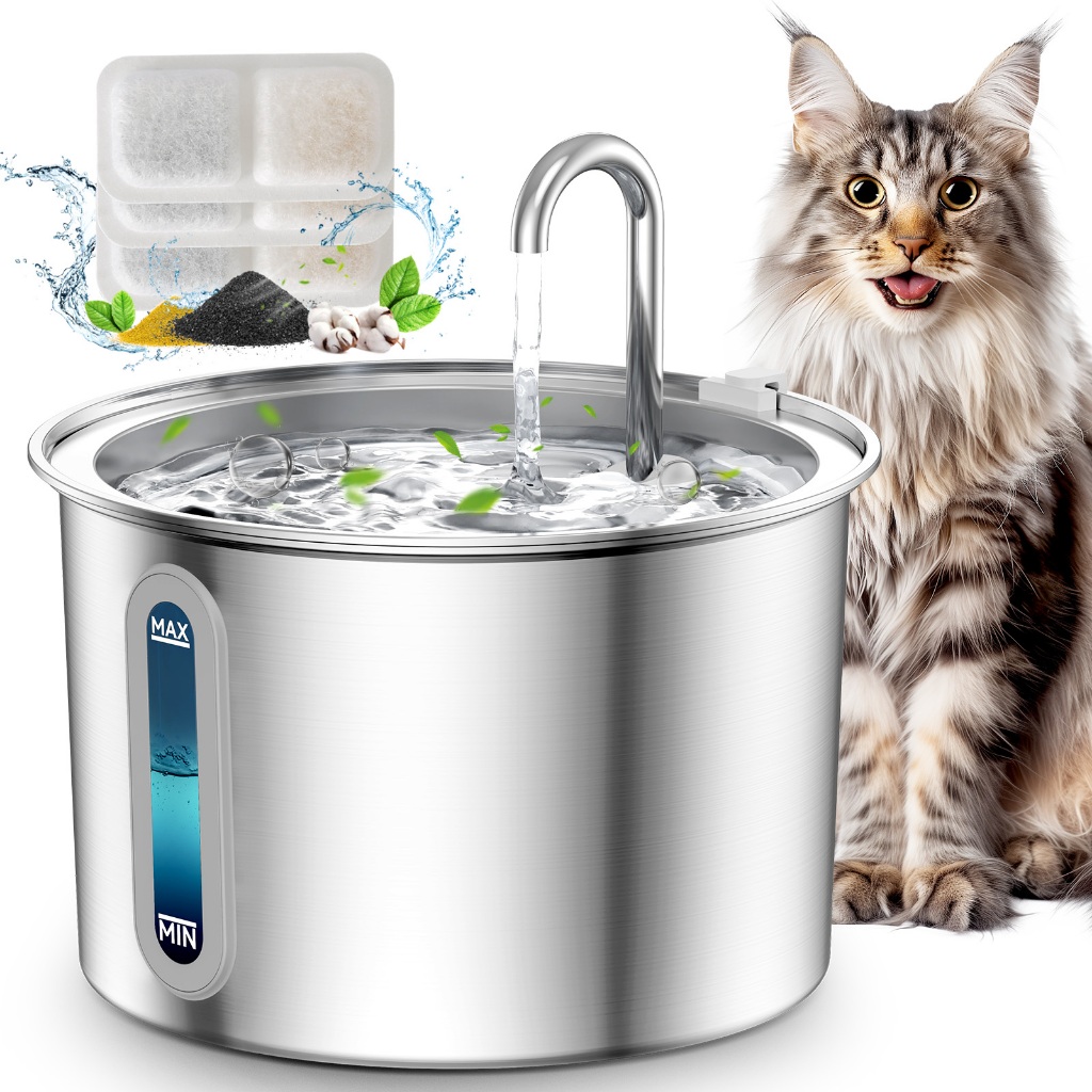 OneIsAll 3.5L Cordless Stainless Steel Pet Water Fountain with 3 Filters - Fresh Water Anytime pd