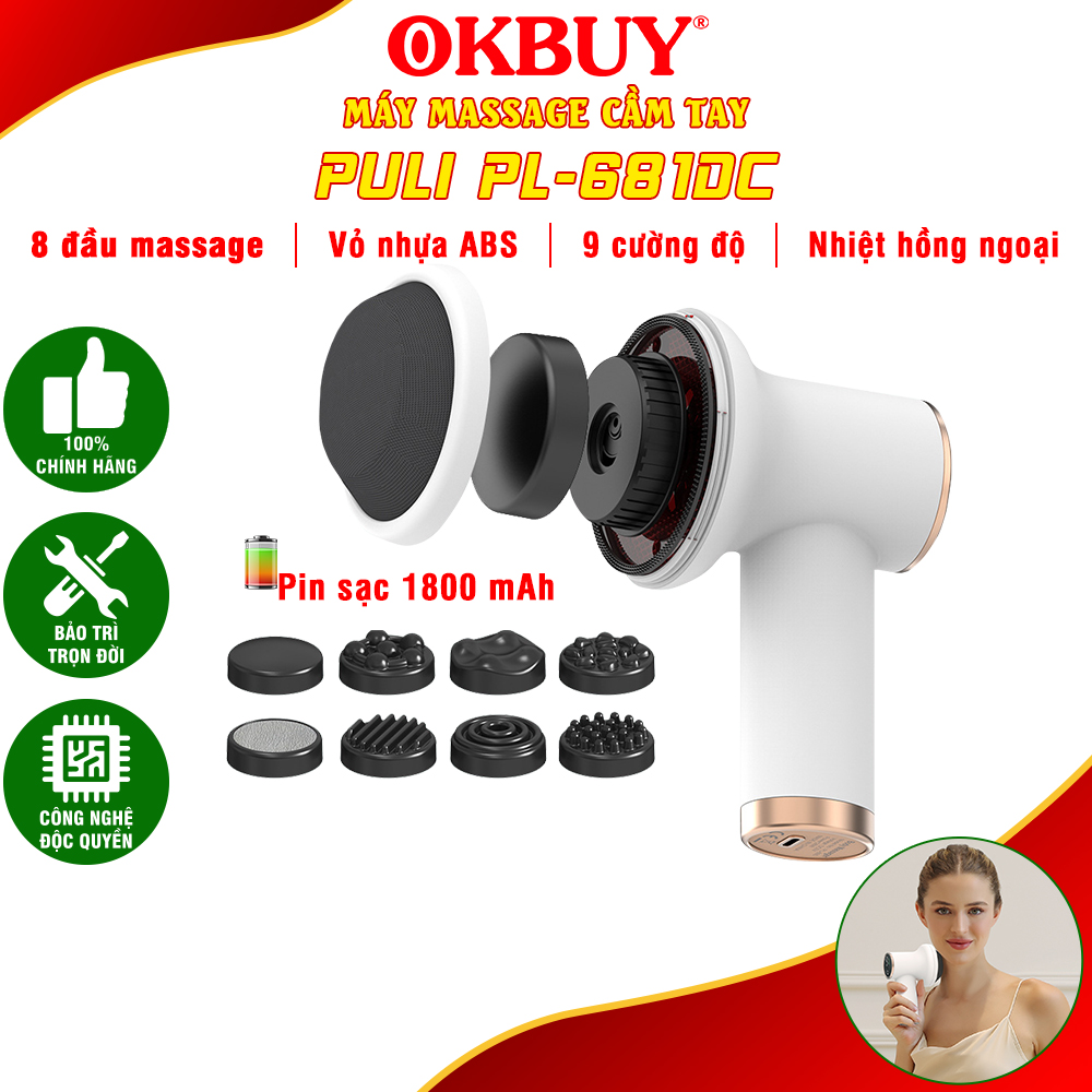 Máy massage cầm tay mini Puli PL-681DC - 8 đầu thay đổi