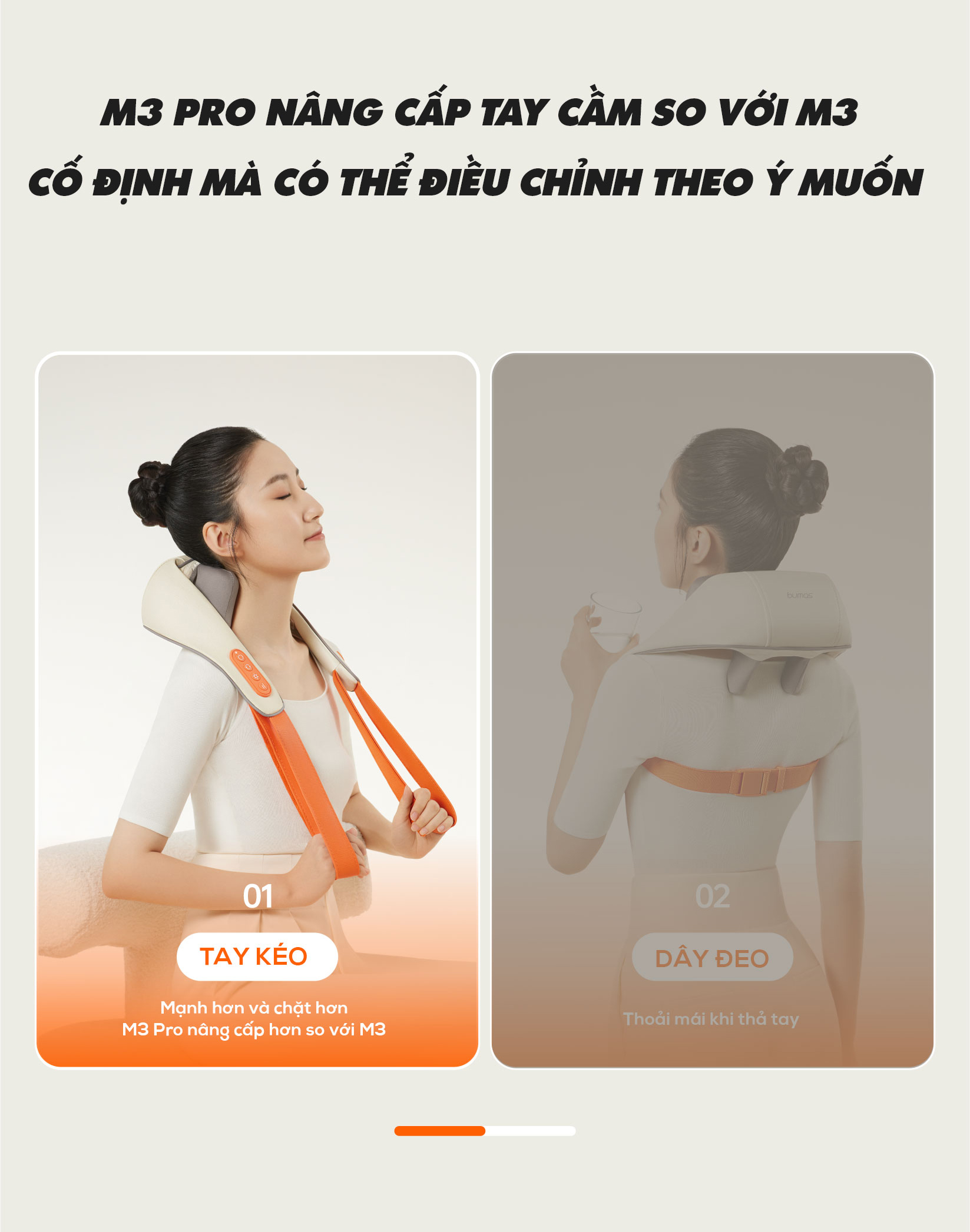 Máy Massage Cổ Vai Gáy M3 Pro Nâng Cấp Mới TÍNH NĂNG ĐẶC BIỆT CỦA SẢN PHẨM: KHÔNG GIỚI HẠN HOẠT ĐỘNG: Nâng cấp dây đeo vai kết hợp tay kéo dễ dàng