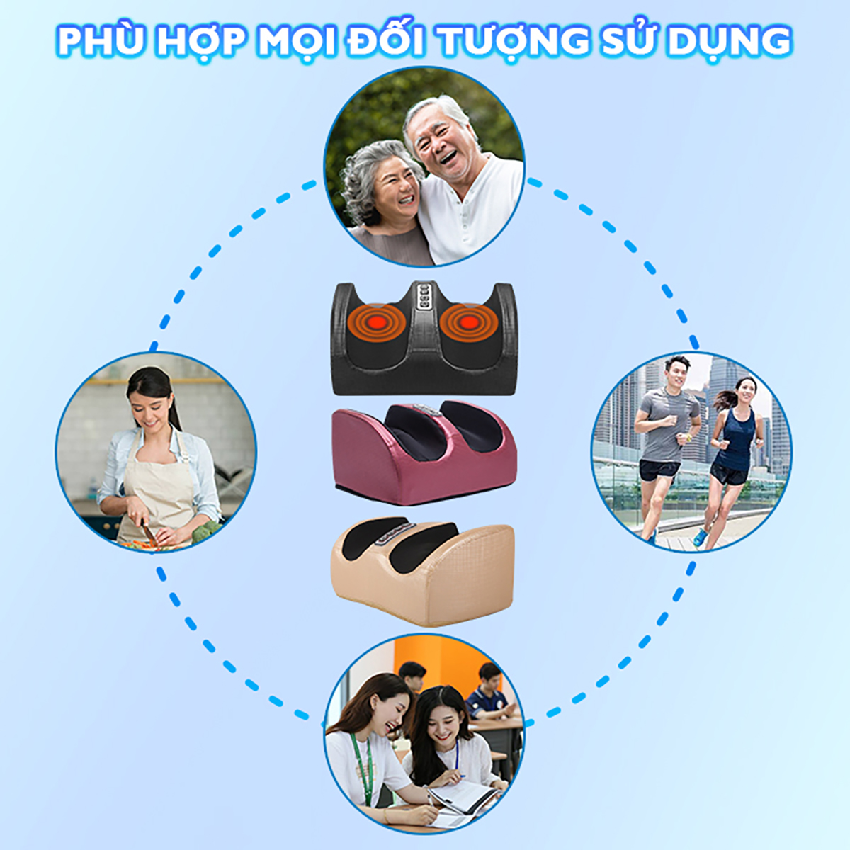 Máy có thể sử dụng cho mọi đối tượng như: nhân viên văn phòng, người lao động, người nội trợ, học sinh, sinh viên. Đặc biệt, người cao tuổi thường xuyên đau mỏi và tê bì chân.