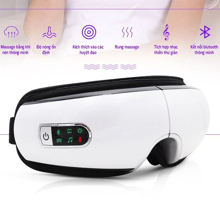 Giúp thúc đẩy tuần hoàn máu, giảm mệt mỏi và căng thẳng xung quanh mắt. Co bóp và ép túi khí nhịp nhàng khu vực xung quanh mắt, giúp thúc đẩy giãn nở mạch máu, lưu thông khí huyết, hỗ trợ giảm quầng thâm mắt