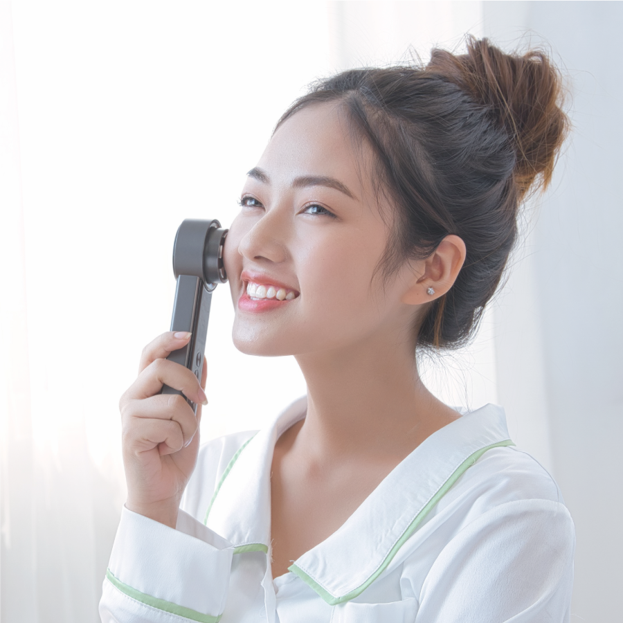 Điện châm EMS với dòng điện vi mô kích thích các tế bào da, massage nâng cơ, thon gọn mặt và tạo dáng cằm V-line.