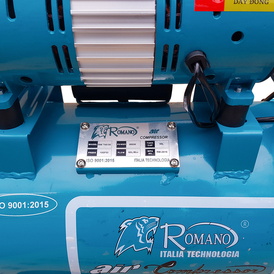Máy nén khí không dầu ROMANO RM700/30 được sản xuất trên dây chuyền công nghệ hiện đại của Italy, tích hợp những tính năng ưu việt như: thân máy chắc chắn, máy chạy êm, thời gian nạp khí siêu nhanh, thân thiện môi trường, đạt tiêu chuẩn an toàn cao khi sử dụng.