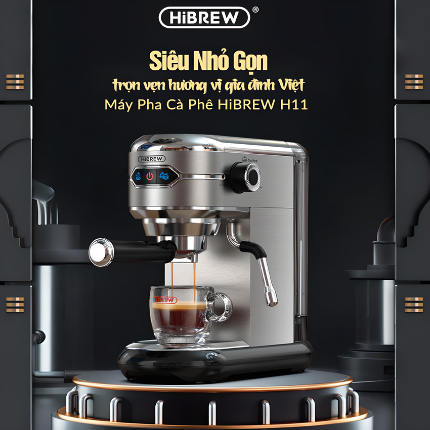 Máy pha cà phê espresso bán tự động thương hiệu HiBREW cao cấp H11 , áp suất 19bar , công suất 1450W - Hàng Chính Hãng Máy pha cà phê Espresso chuyên nghiệp HiBREW H11 là