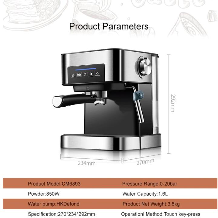 - Áp suất 20 bar tạo ra một ly Espresso với hương thơm đậm đà và lớp kem màu hạt ở trên.
