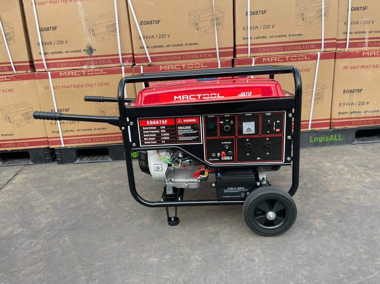 Thông tin hữu ích về máy phát điện Mactool EG6875F: Công suất định mức: 6.5 kW (8.1 kVA) Công suất tối đa: 7.0 kW (8.8 kVA) Điện áp định mức: 220 V Dòng điện định