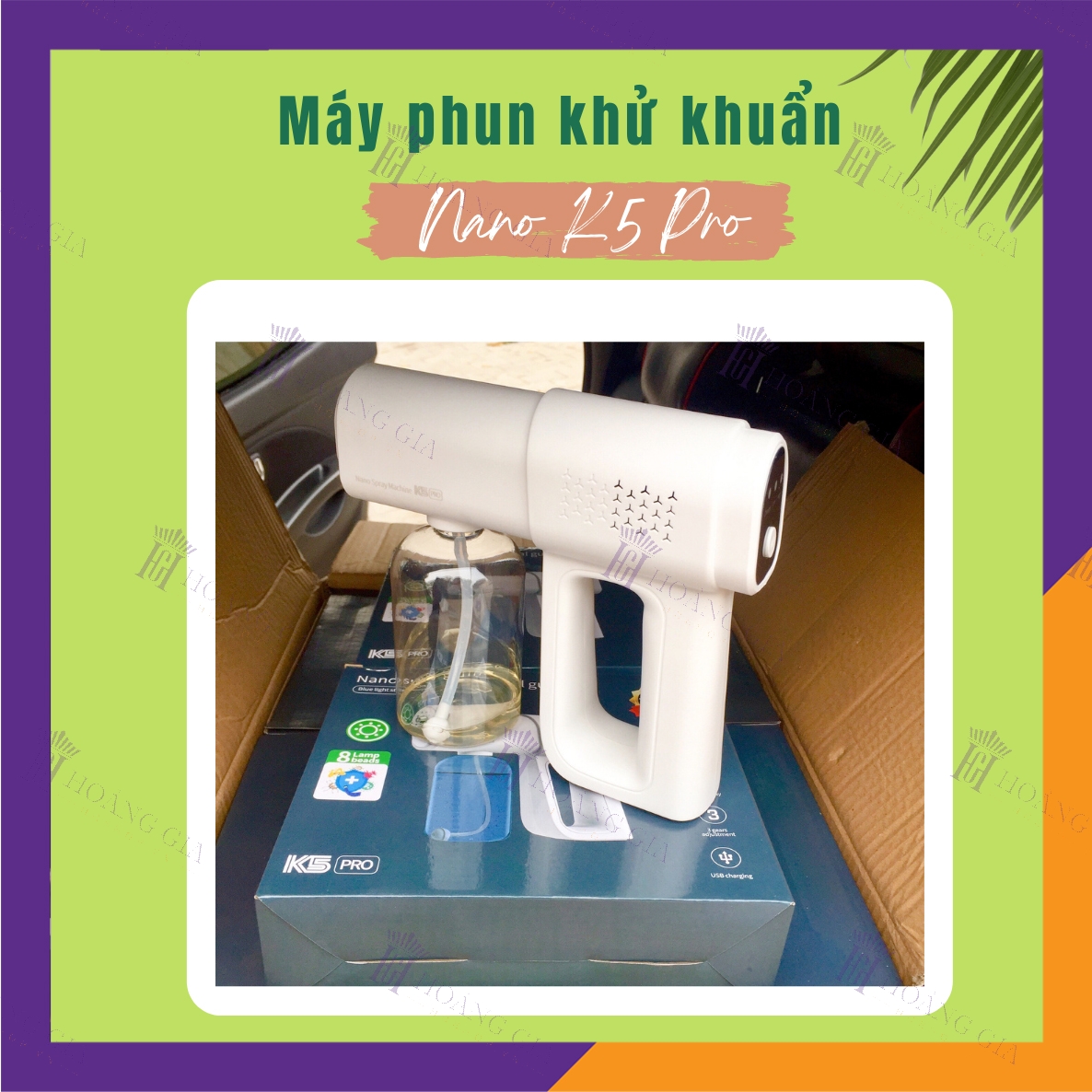 Súng phun khử khuẩn cầm tay K5 pro với 8 tia UV, xa 1.5m