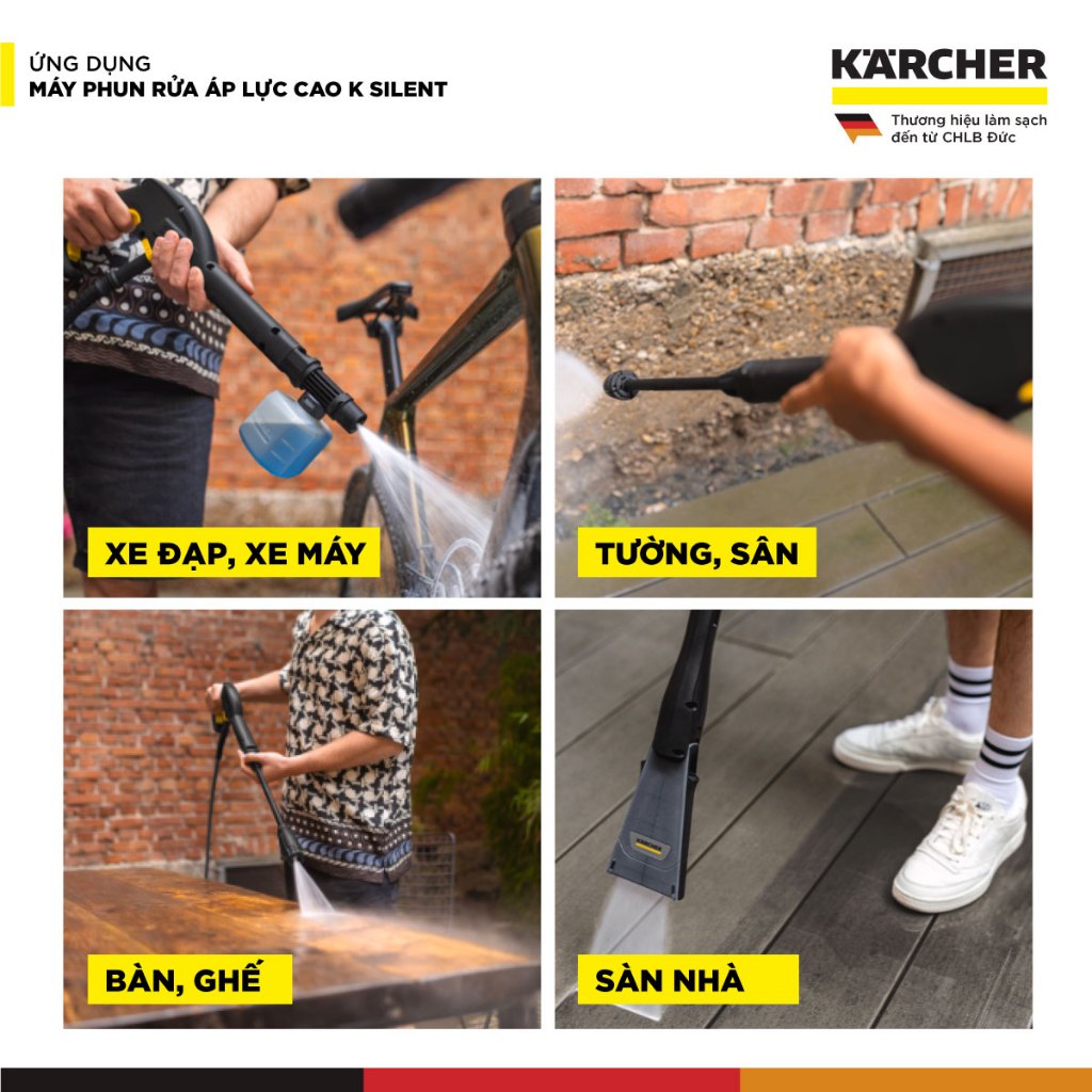 ✨Máy phun rửa áp lực cao Karcher K Silent - Công suất 1800W, áp lực tối đa 130 bar - Bảo hành chính hãng 24 tháng - Hàng Chính Hãng