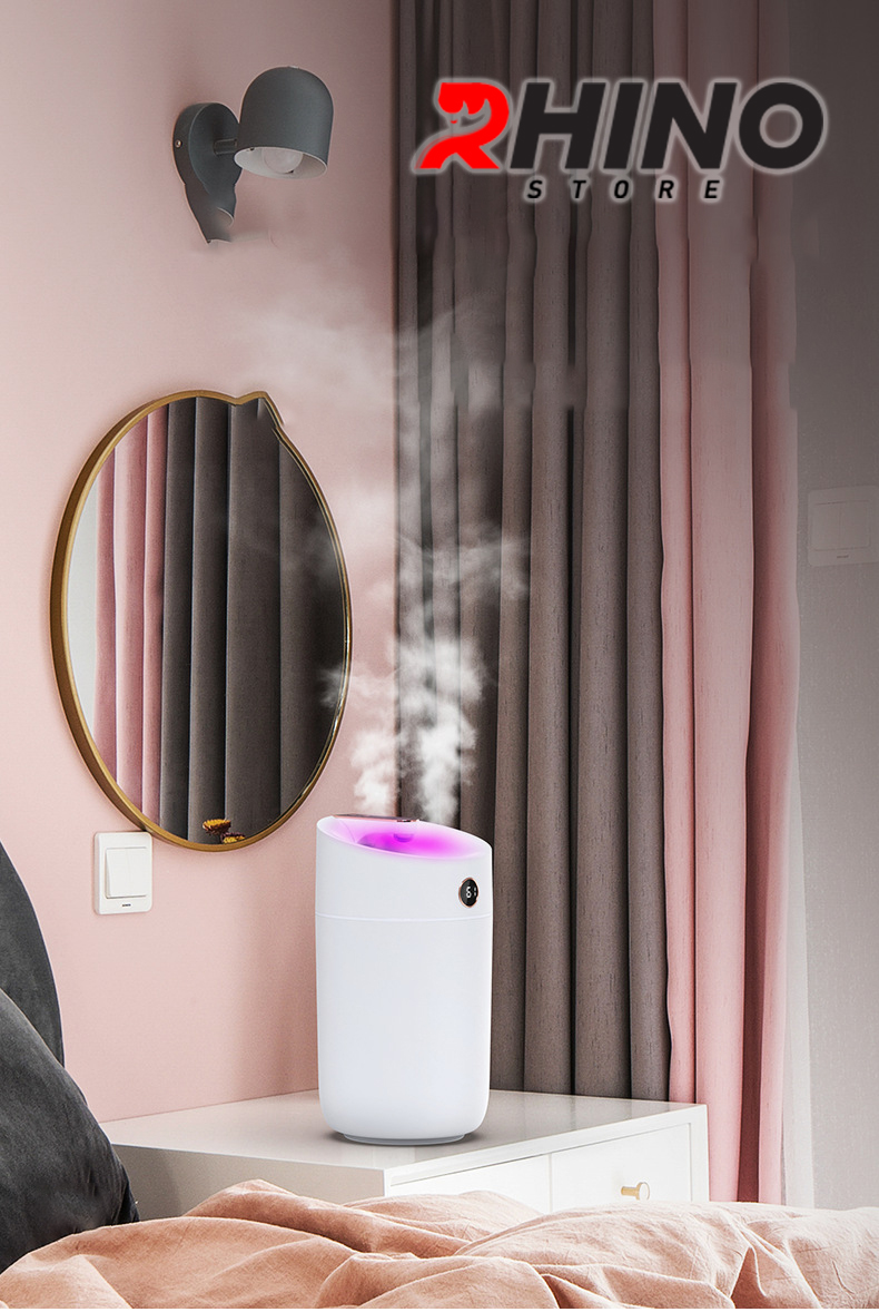 ✨Máy phun sương tạo ẩm cỡ lớn Rhino H801 3000ml, 2 lõi phun, tích hợp đèn 7 màu, dung tích lớn cho không gian rộng - Hàng chính hãng