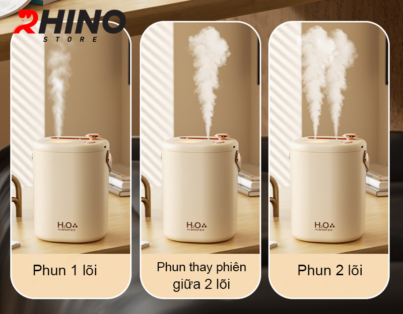 Máy phun sương Rhino H810 tạo ẩm, 2 đầu phun kèm đèn ngủ, 2 lõi phun tích hợp đèn, tiện lợi, dung tích lớn cho không gian rộng với ưu điểm 2