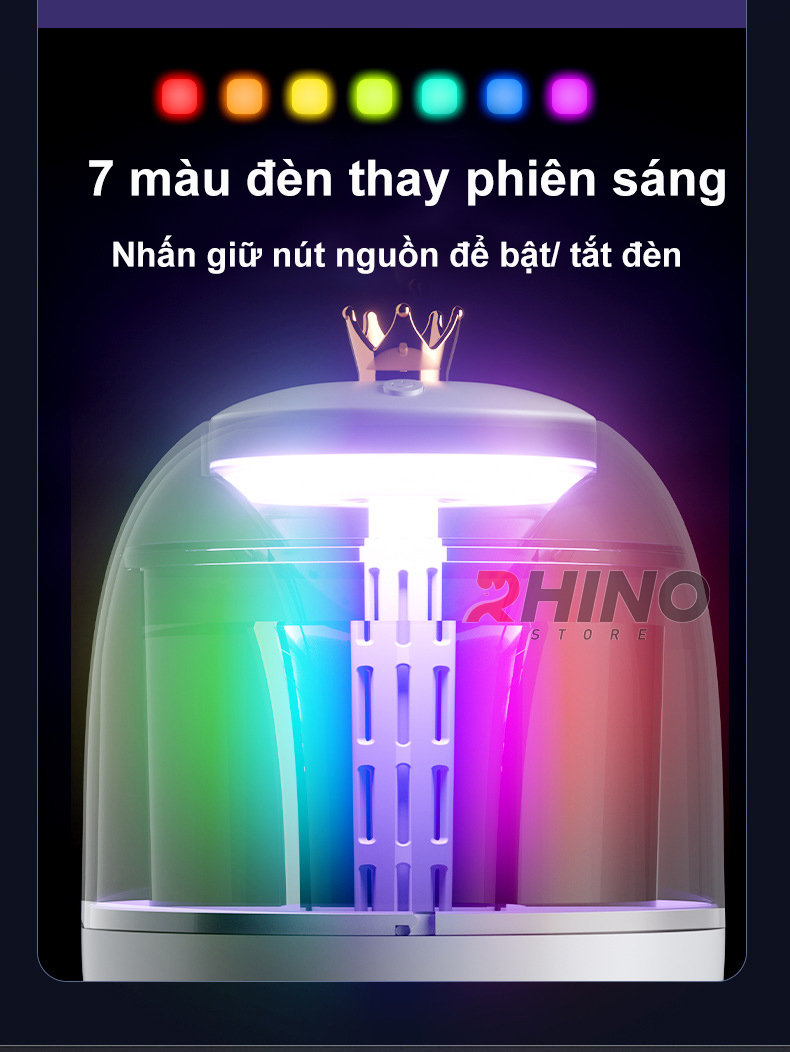 Mua tại TiktokMáy phun sương xông tinh dầu tạo ẩm Rhino H105 dung tích 1000ml không gây tiếng ồn, tích hợp đèn ngủ RGB nhiều màu Máy phun sương tạo ẩm là một thiết bị rất cần thiết đối với mọi gia đình trong thời tiết khô hanh, độ ẩm thấp với tác dụng chính là cấp thêm độ ẩm trong không khí. Từ đó giúp da không bị mất nước, khô nứt nẻ đặc biệt vùng môi và da mặt tạo ra môi trường sống thoải mái và dễ chịu nhất, không còn mặc cảm khi tiếp xúc với mọi người. Khi kết hợp với tinh dầu sẽ tạo ra bầu không khí dễ chịu, tránh nấm mốc và côn trùng ruồi muỗi (không nên lạm dụng và phải chọn đúng tinh dầu chất lượng tốt)