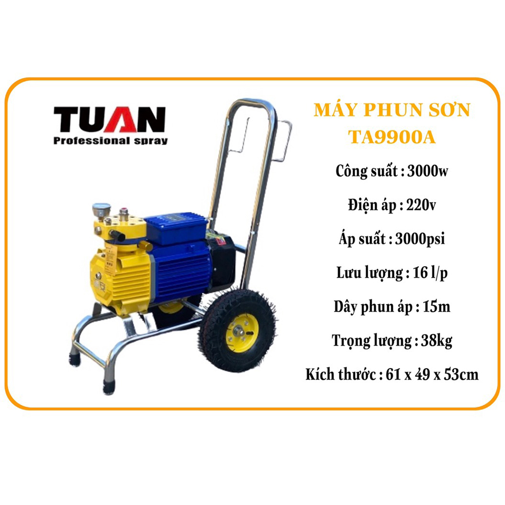 Máy Phun Xịt Sơn Bột Bả Đa Năng ABG Tuan TA-9900A, Công Suất 3000W, Có Thể Phun Tới 16 Lít/Phút – Hàng Chính Hãng Máy Phun Xịt Sơn Bột Bả Đa Năng ABG Tuan TA-9900A,