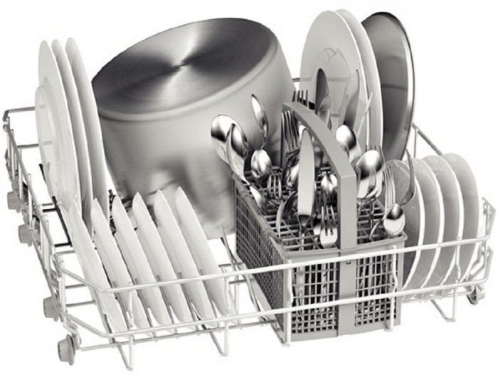 Máy rửa bát độc lập hoặc âm tủ 2 khay chứa cơ động + 1 khay đề thìa, đũa, dĩa, dao, kéo Tiết kiệm đến gần 50% năng lượng và thời gian, ngoài ra giúp