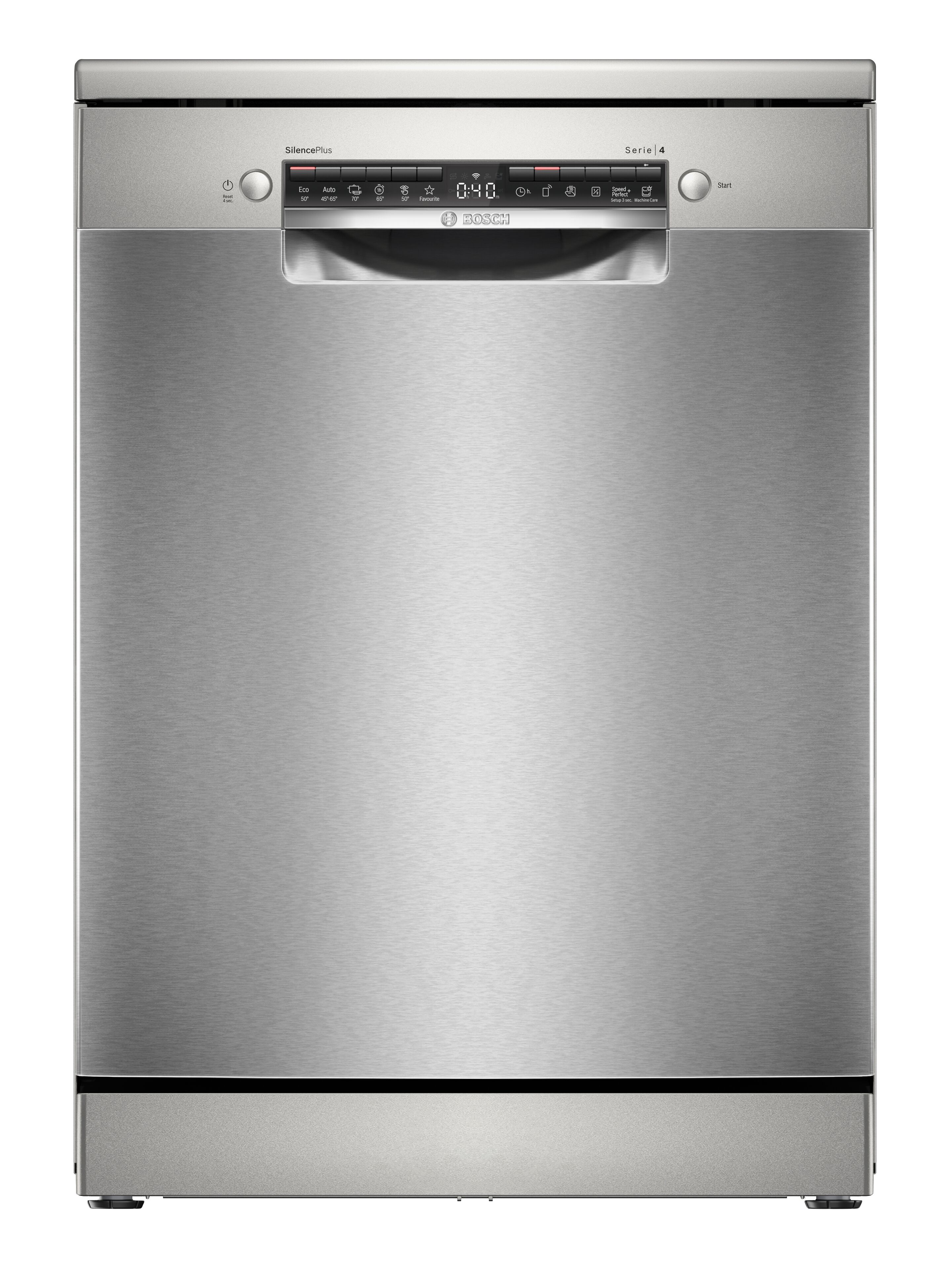 Bề mặt máy rửa bát SMS4EMI06E được phủ lớp chống bám vân tay không tì vết, quá trình làm sạch bên ngoài càng trở nên dễ dàng hơn.