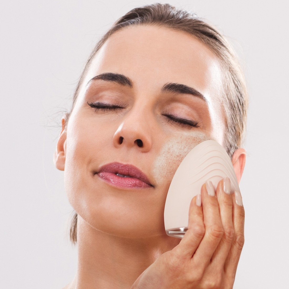 - Sử dụng Blossom theo chuyển động tròn trên khắp khuôn mặt của bạn, sử dụng đầu nhọn để nhắm mục tiêu vào vùng t và vùng cằm.