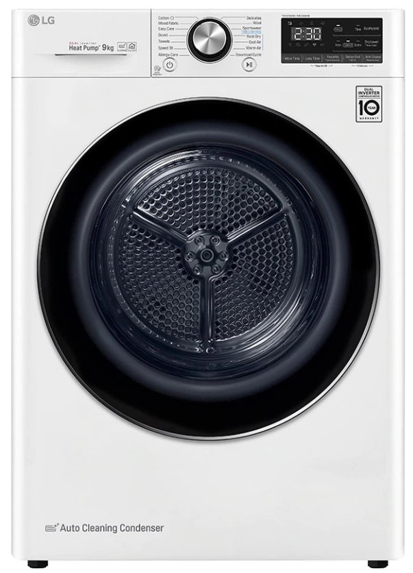 LG DVHP09W đáp ứng khối lượng quần áo sấy đến 9kg, phù hợp cho những hộ gia đình có số thành viên từ 3 - 5 người.