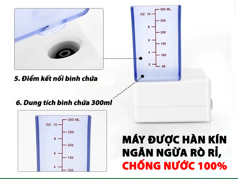 – Bình chứa có dung tích 300ml, thiết kế dễ dàng thêm nước.