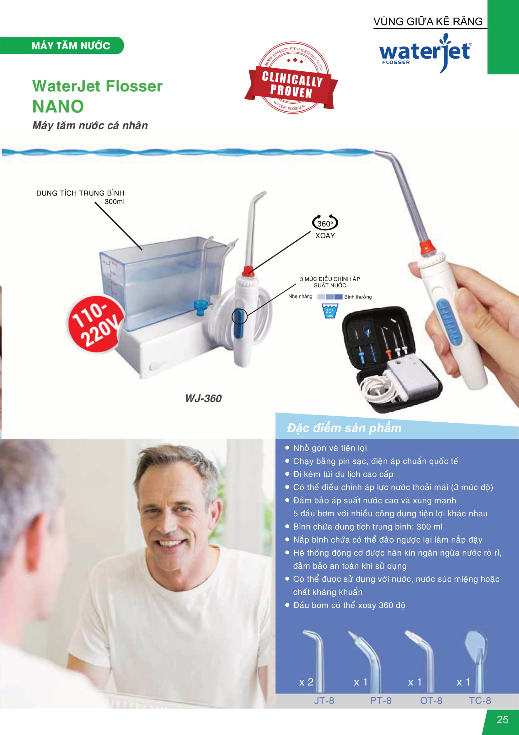 – Máy tăm nước du lịch không dây Waterjet Flosser Nano là thiết bị hoàn hảo để giữ cho nướu khỏe mạnh. Máy được thiết kế đặc biệt cho những người có nướu nhạy cảm (hay bị chảy máu), niềng răng chỉnh nha, cấy ghép, mão răng hoặc cầu răng, răng mọc lệch.
