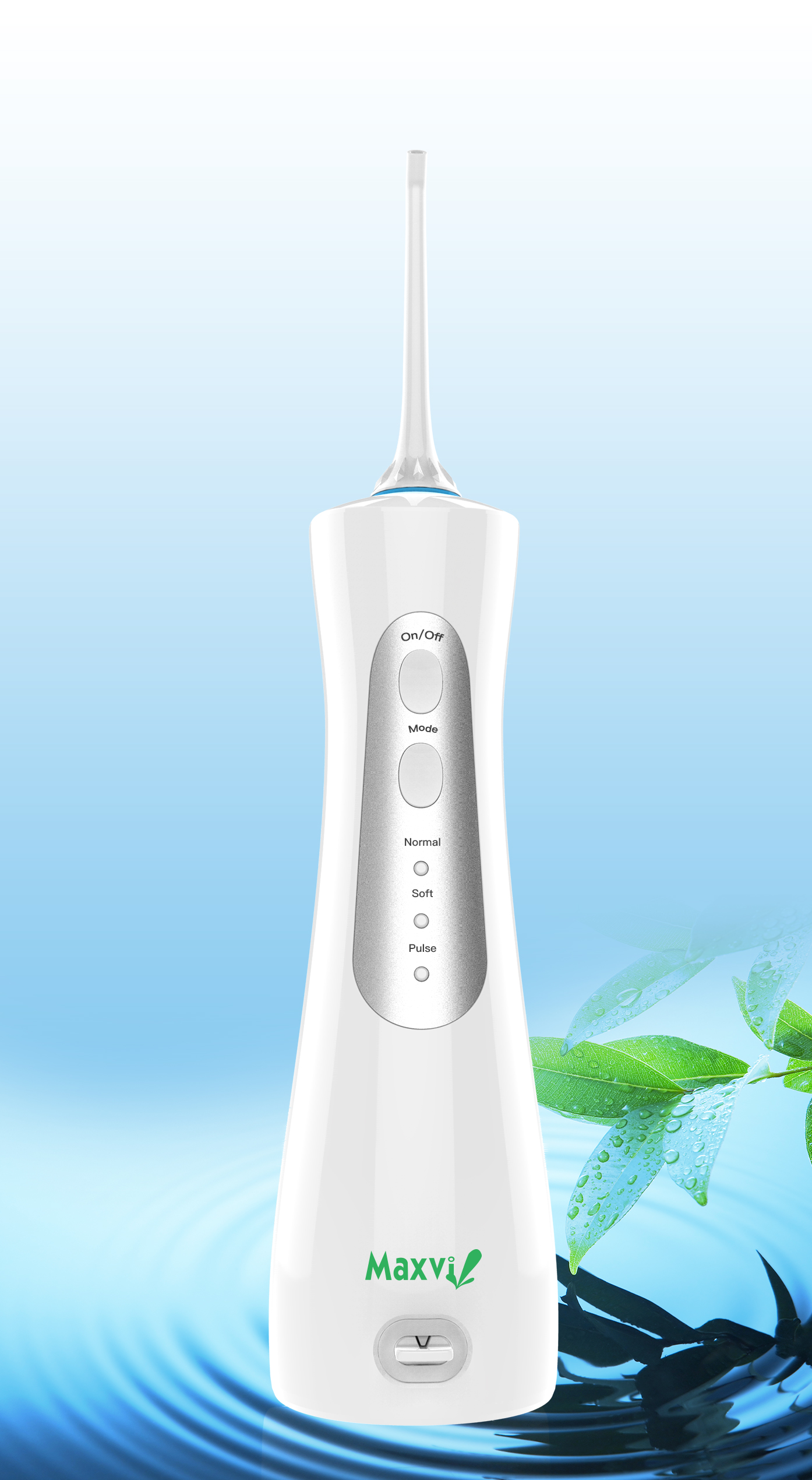 Máy tăm nước Maxvi thiết kế nhỏ gọn, chống thấm nước. Máy sử dụng như chiếc điện thoại di động nhờ pin lithium 1.400 mAh. Khi máy hết pin cắm sạc vào cổng USB, đầy pin lại sử dụng bình thường. Khi đi du lịch, chỉ cần tháo vòi cho vào túi và mang theo rất gọn nhẹ và tiện lợi.