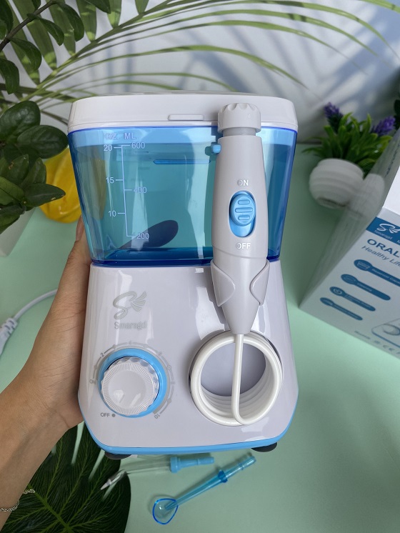 Máy tăm nước dùng trong gia đình Dung tích bình chứa nước 600ml Điện áp 100-240V Tần số 50/60Hz Công suất 18W Gồm 6 đầu tăm 10 mức áp lực nước