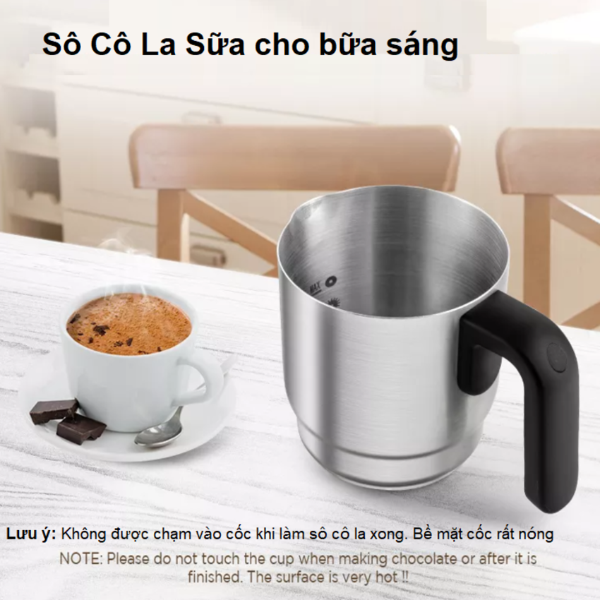 - Máy tạo bọt sữa được làm bằng inox cao cấp 304, dày dặn; siêu bền bỉ và hoàn toàn chống han gỉ. Bề mặt inox được phủ thêm lớp chống dính giúp bạn dễ dàng vệ sinh. Thanh khuấy inox siêu bền