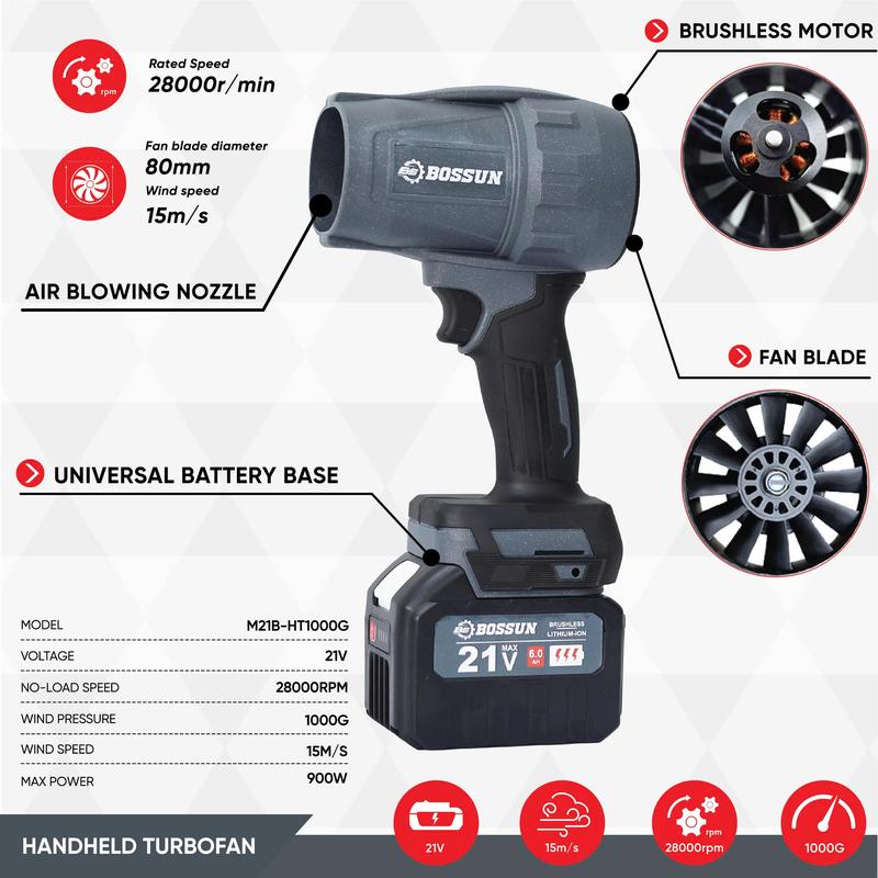Máy Thổi Phản Lực Dùng Pin Bossun - M21B-HT1000G - Động Cơ Không Chổi Than - Chân Pin Phổ Thông - Pin 15 Cell 21V/6Ah - Bảo Hành Chính Hãg 6 Tháng