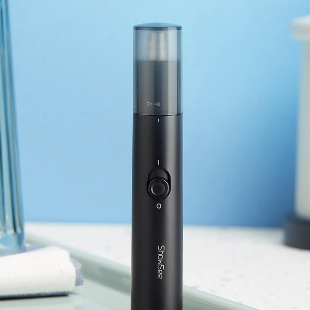 Features: High Speed Micro Motor. R-sharpen Round CutterHead. Double-edged Blade. Removale Washable CutterHead. Specification: Brand: ShowSee Model: C1-BK Electric Nose Hair Trimmer Material: ABS + Stainless Steel Color: Black Rated Voltage: 1.5V Rated power: 2W
