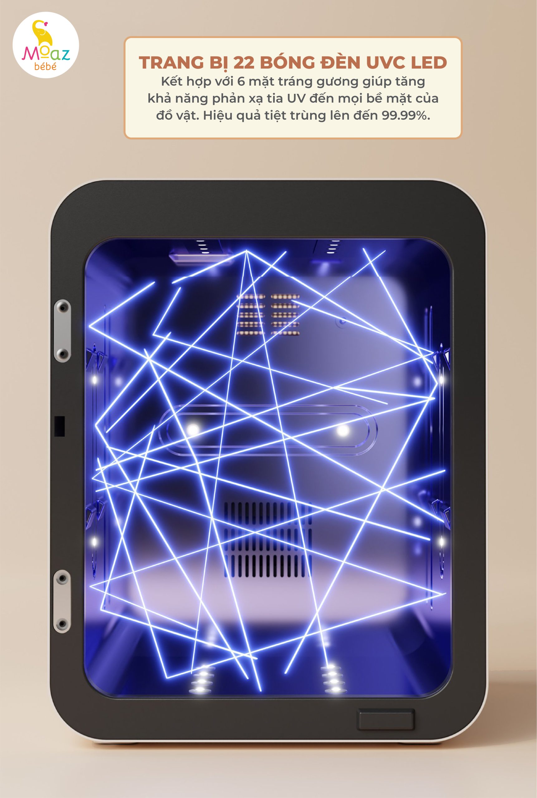 Máy tiệt trùng UVC ION Moaz 082 tích hợp đa tính năng đặc biệt áp dụng công nghệ tiệt trùng i- on hoàn toàn mới giúp diệt sạch vi khuẩn, nấm mốc và các tác nhân có trong bình sữa, đồ dùng của bé.