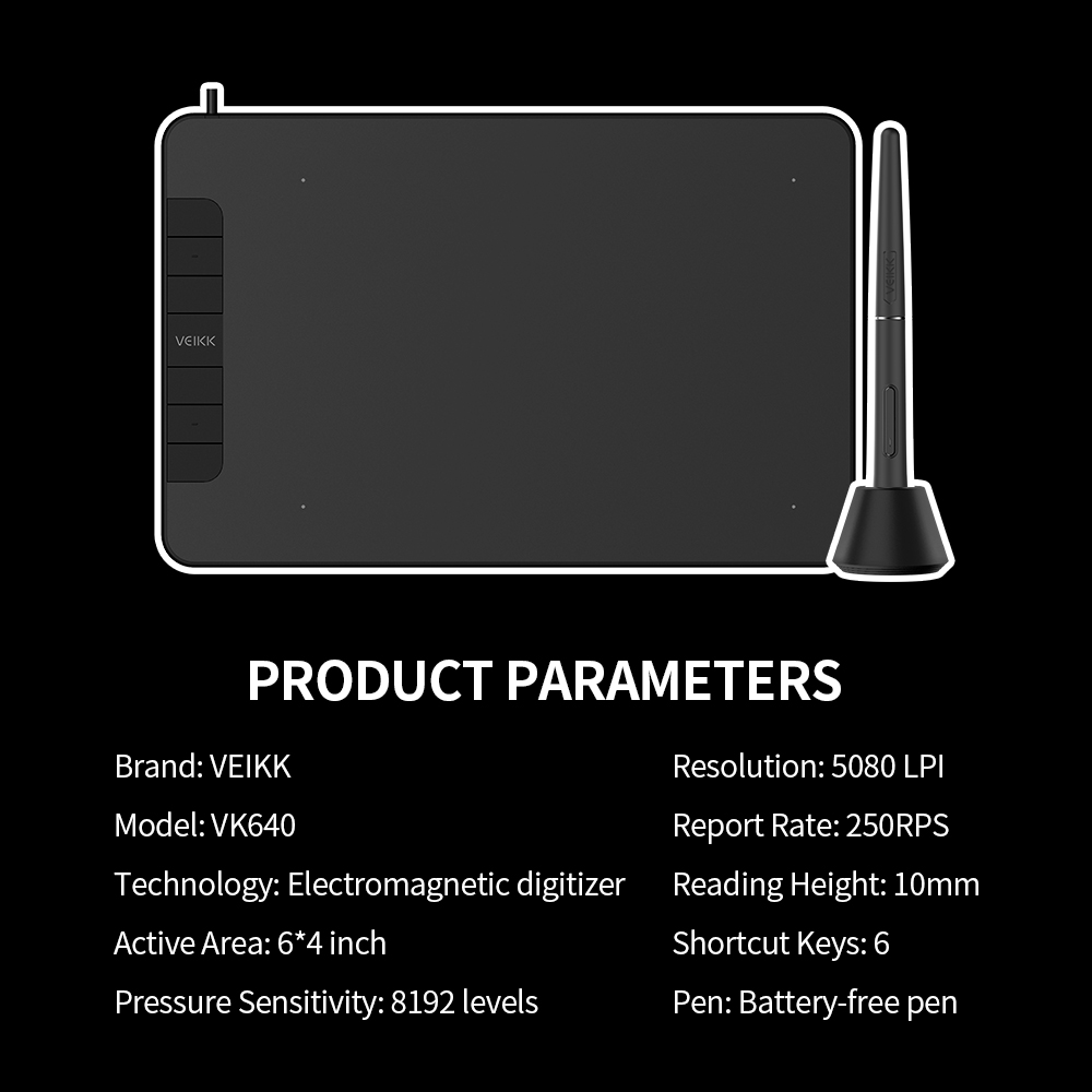 Features: Ultrathin and Ultra-small, 6*4 inch active area, only 2mm thick, light weight and portable. High sensitivity battery-free pen, 8192 level of pressure sensitivity passive stylus pen features to draw lines and brush of any