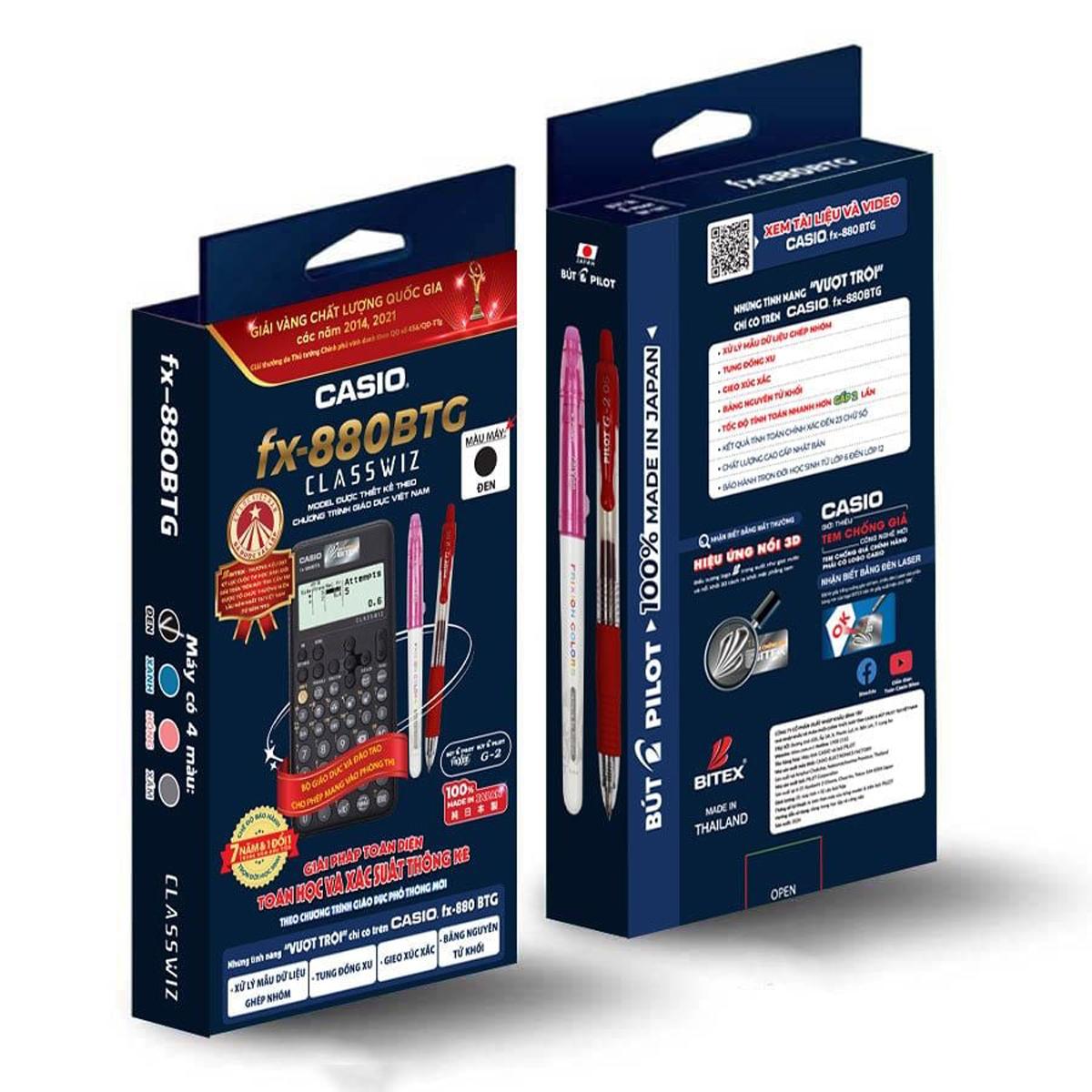 Máy tính Casio fx-880BTG thuộc dòng máy tính khoa học ClassWiz của hãng máy tính CASIO. Máy tính Casio fx-880BTG đã ra đời với nhiều cải tiến về: thiết kế - giao diện, tính năng nổi trội và độ chính xác cao… để đáp ứng thực tiễn dạy và học tại Việt Nam, đồng thời thay đổi tư duy học tập lâu nay của học sinh.