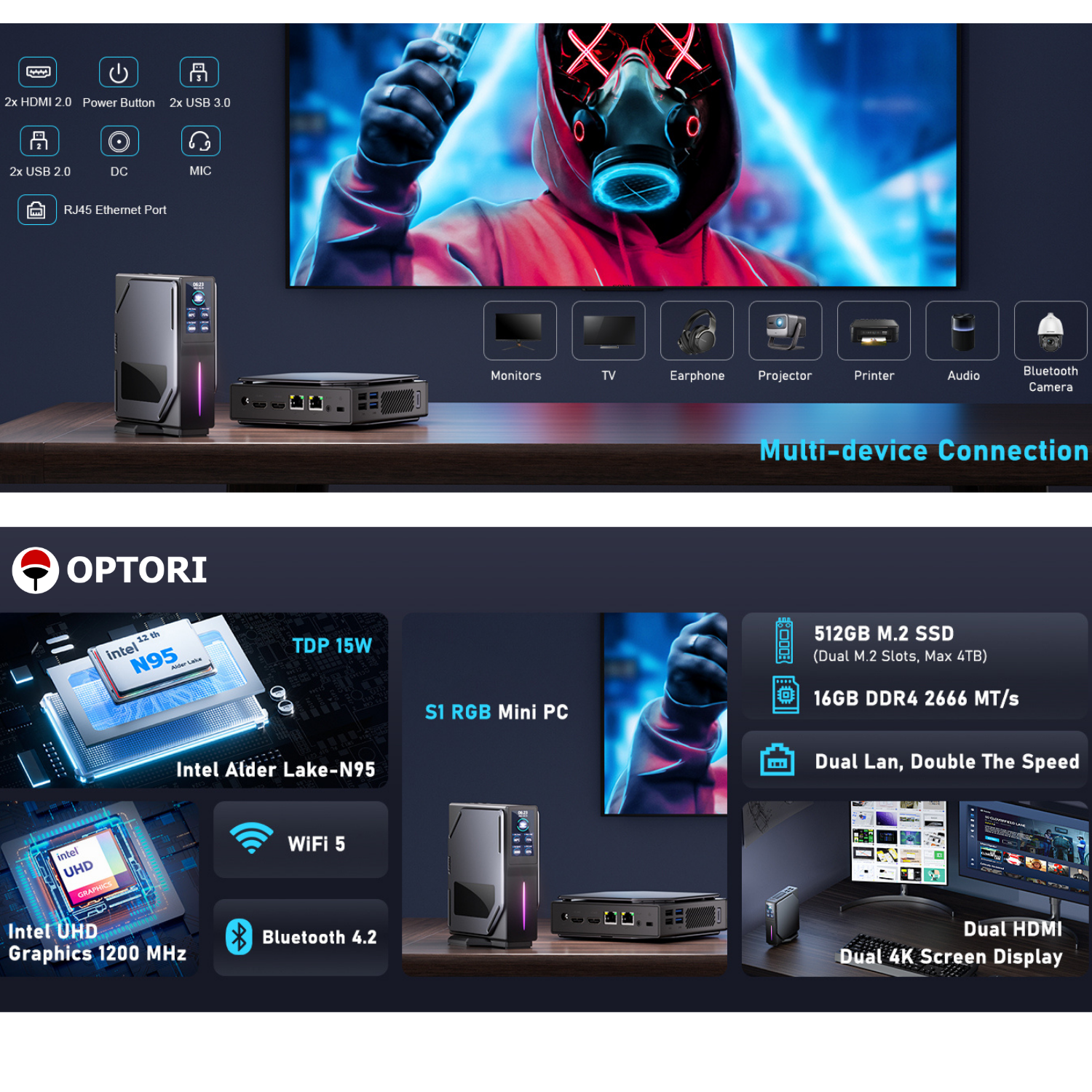 CPU: Intel Alder Lake N100, gen 12th 2023, 4 core 4 threads,64 bit, up to 3.4GHz, 6M cache