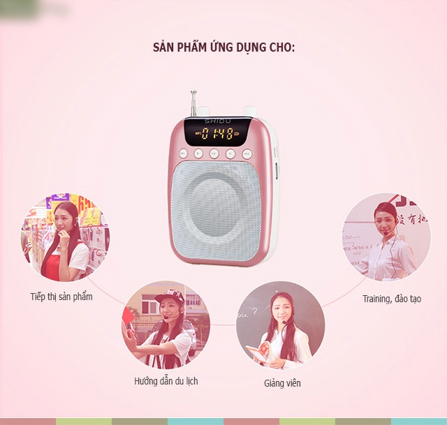 • Với giá cả phải chăng, phù hợp với nhiều đối tượng. SHIDU SD-S358 Bluetooth có 2 loại: máy trợ giảng 1 mic Có dây- Máy trợ giảng 2 mic có dây và không dây FM