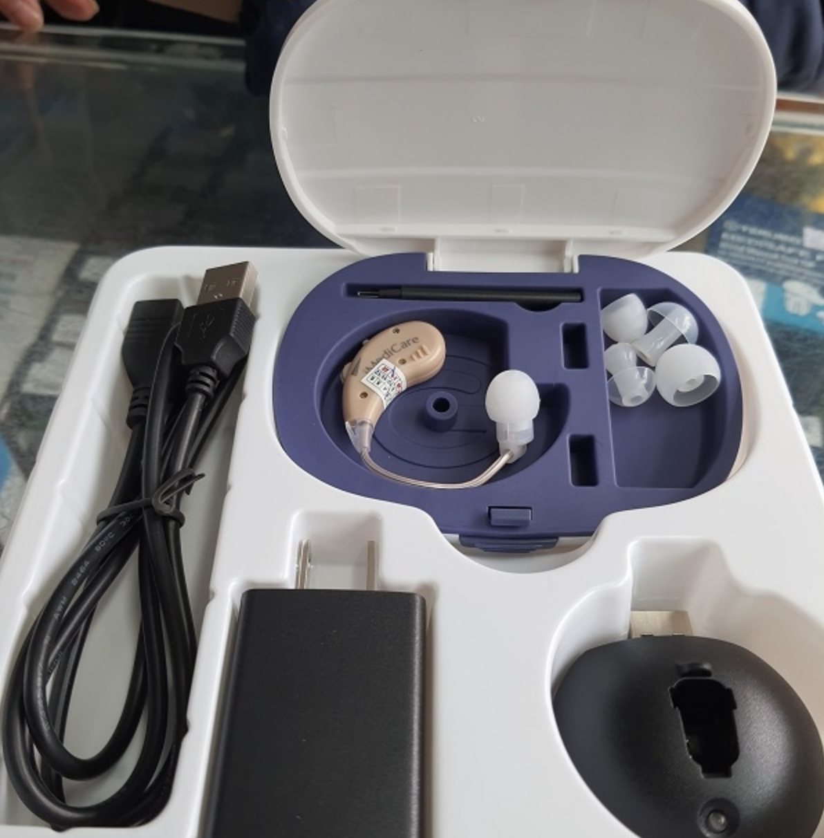 - Hộp đựng Ưu điểm nổi bật: – Sử dụng liên tục 12-14 giờ với một lần sạc đầy – Công nghệ kỹ thuật số mới nhất giúp xử lý âm thanh đầu vào, giảm nhiễu, âm thanh nghe rõ ràng, có thể tăng giảm mức to nhỏ phù hợp. – Linh hoạt sử dụng cho tai trái hoặc tai phải – Người sử dụng dễ dàng tự bật/tắt. – Sử dụng sạc USB đi kèm có thể sạc qua cổng của máy tính, củ sạc… – Phần dây đeo vòng qua tai có thể điều chỉnh để vừa với nhiều kích thước tai khác nhau – Có hộp đựng và dụng cụ làm sạch đi kèm trong bộ sản phẩm – Bảo hành 12 tháng trên toàn quốc. Máy siêu nhỏ gọn, siêu nhẹ, phần dây đeo vòng qua tai có thể điều chỉnh để vừa với nhiều kích thước tai khác nhau