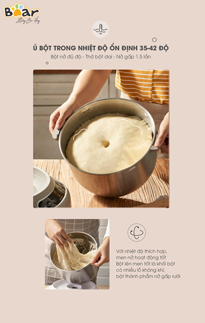 Máy nhồi trộn bột Bear 7L nhào bột, ủ bột tự động, âu trộn thép không gỉ – Hàng chính hãng bảo hành 18 tháng 6 Lý do nên mua MÁY NHỒI TRỘN BỘT BEAR