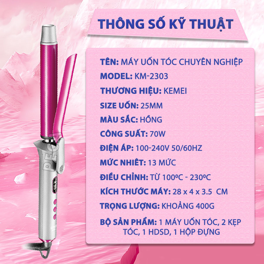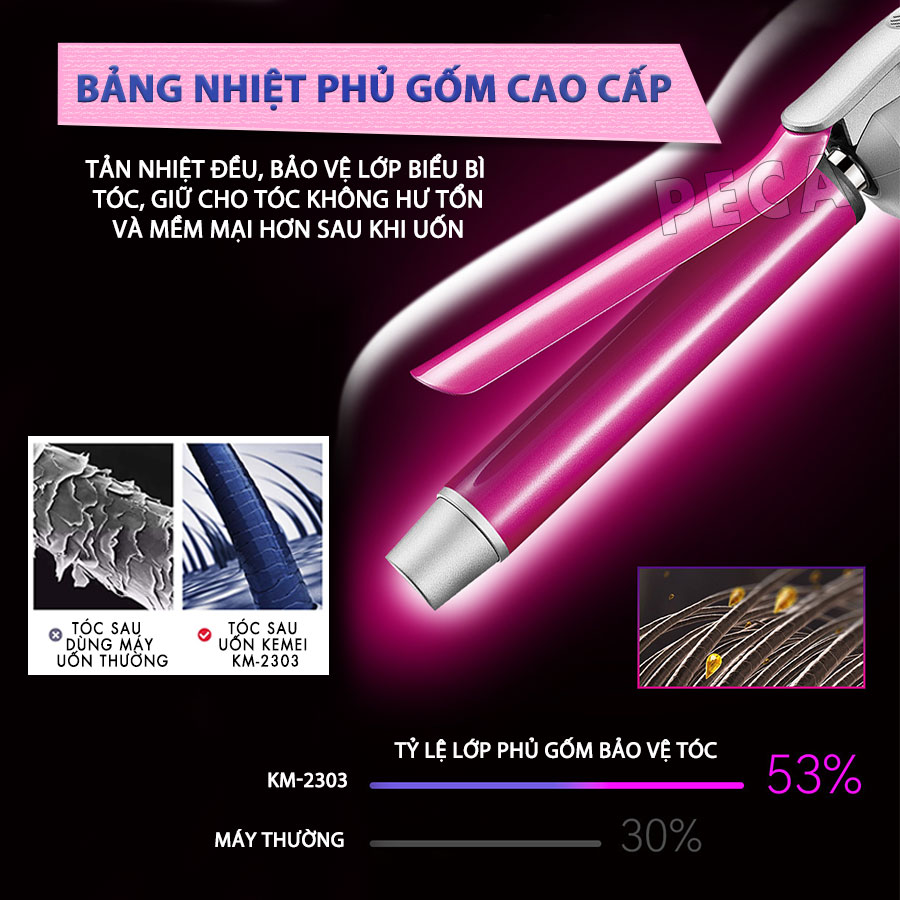 MÁY UỐN TÓC KEMEI KM-2303 ĐIỀU CHỈNH 13 MỨC NHIỆT ĐỘ PHÙ HỢP VỚI MỌI LOẠI TÓC - CHÍNH HÃNG Kemei KM-2303 là dòng máy uốn tóc chuyên nghiệp với thiết kế hiện đại, tính năng thông