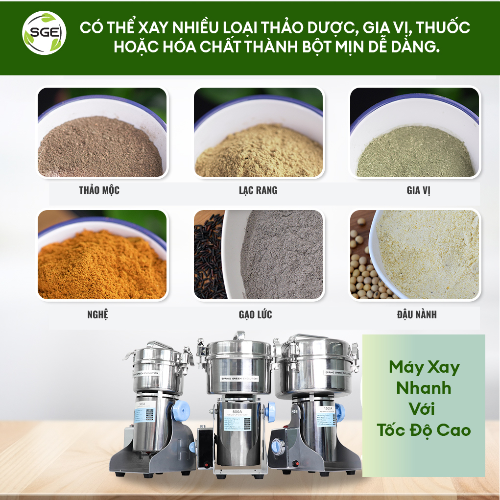 Máy xay bột thảo dược hiệu quả cao đáp ứng nhu cầu xay nhanh, đều và nhuyễn. Giúp tăng giá trị sản phẩm. Dễ dàng nghiền nhiều loại thảo mộc, gia vị, thuốc hoặc hóa chất thành bột mịn.