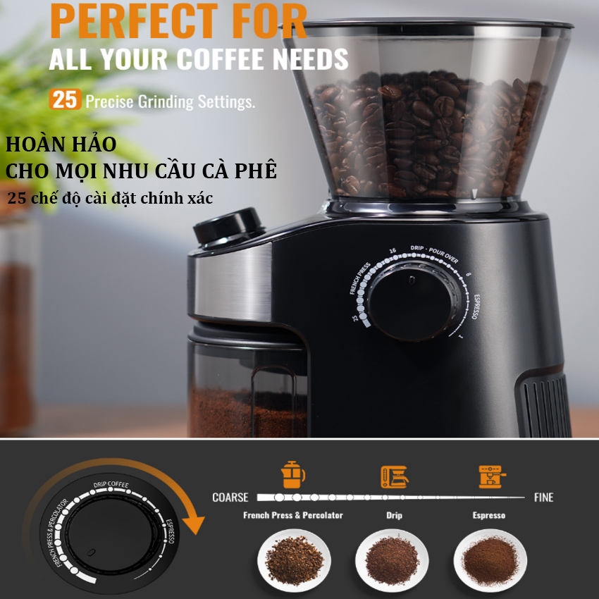 ✨Máy xay hạt cà phê cao cấp Shardor CG836B Tích hợp 25 chế độ xay hạt cà phê - Cài đặt thời gian xay 40 giây - Hàng Nhập Khẩu