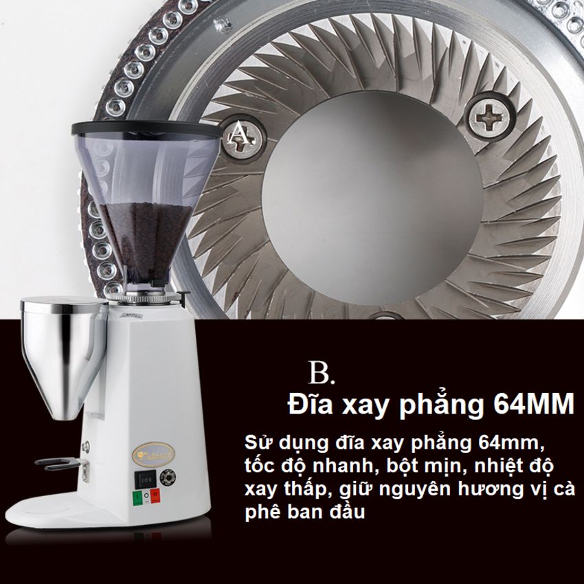 Đặc điểm nổi bật: - Lưỡi dao phẳng 64mm: Được thiết kế bằng thép không gỉ có khả năng xay mịn với độ vón cục tối thiểu. - Tích hợp máy tạo Plasma kép trên