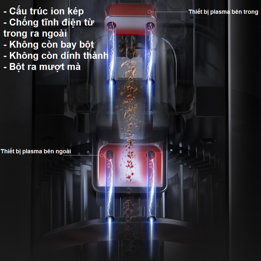 Đặc điểm nổi bật: - Lưỡi dao phẳng 64mm: Được thiết kế bằng thép không gỉ có khả năng xay mịn với độ vón cục tối thiểu. - Tích hợp máy tạo Plasma kép trên