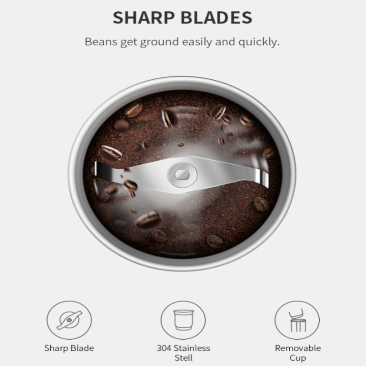 - Máy xay cà phê và gia vị Shardor CG725S được thiết kế hiện đại, nhỏ gọn và dễ dàng sử dụng, có lưỡi dao được làm bằng thép không gỉ cao cấp cùng động cơ 200W mạnh mẽ, giúp bạn xay mịn hạt cà phê một cách nhanh chóng mà vẫn đảm bảo giữ được hương vị và chất lượng của thực phẩm. Có thể xay nhiều loại hạt và gia vị khác nhau